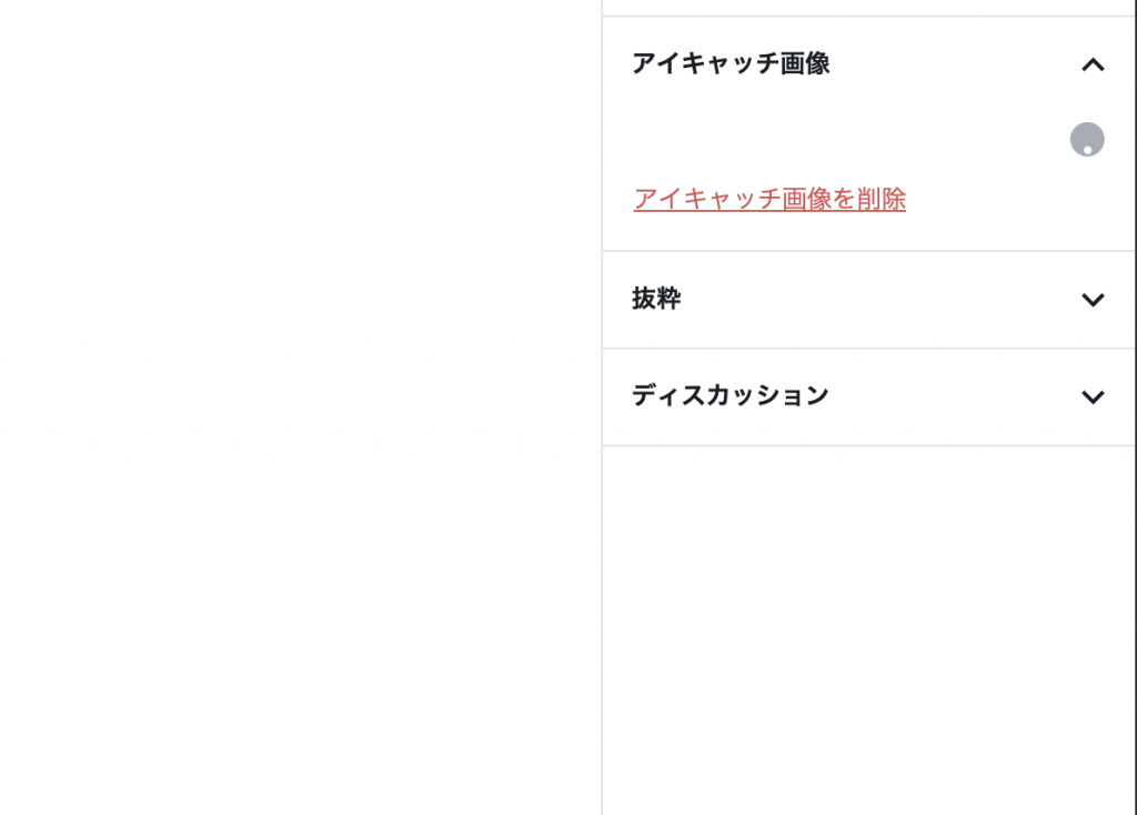 そして、アイキャッチ画像のエリアはあるものの、選択してもサムネイルが表示されず、アイコンがぐるぐる。
